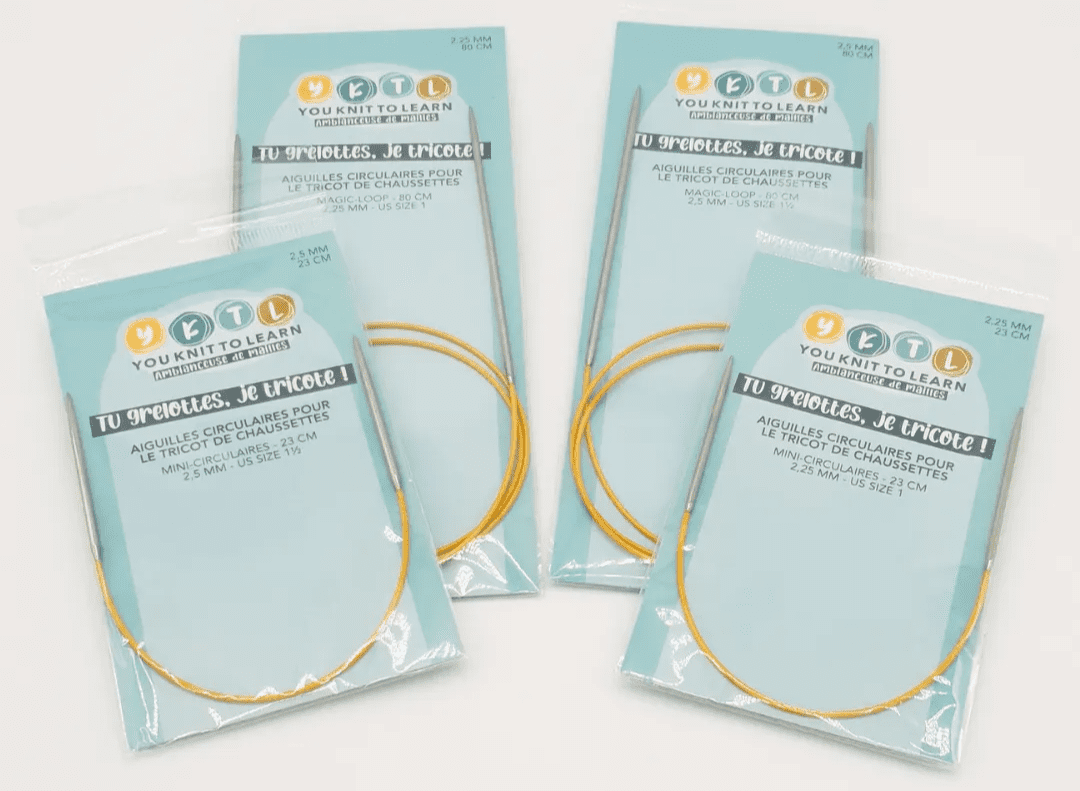 Pensées pour répondre aux préférences des tricoteurs/tricoteuses passionnés/ées, les aiguilles YKTL sont disponibles en 80cm (idéales pour le magic-loop) ou en 23cm (parfaites pour tricoter en mini-circulaire). Elles se déclinent en 2 diamètres essentiels, 2,25mm et 2,5mm, qui correspondent aux tailles les plus utilisées dans le tricot de chaussettes.