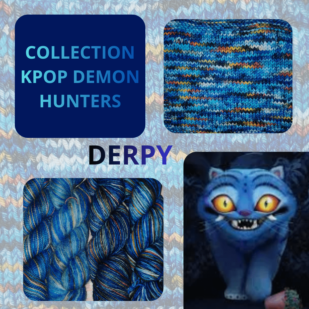 Derpy célèbre l’énergie joyeuse et l’esprit ludique du personnage attachant de KPOP Demon Hunters. Cette explosion aquatique de bleus vibrants, du bleu roi au turquoise éclatant en passant par le bleu ciel, est ponctuée de touches surprises d’orange, de jaune vif et de vert fluo. Un festival de couleurs qui évoque l’optimisme et la détermination face aux ténèbres.